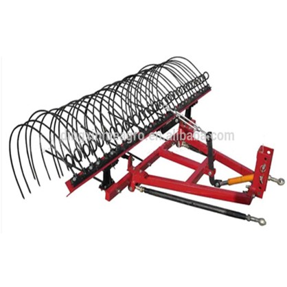 This series of hay rake is mounted on the 4wheel tractor,  the material of tine is 65Mn spring steel to keep durable. this machine has simple structure, convenient operation and reliable use, less failure and high efficiency.  operation quality Maintenance is simple, dynamic performance is good. Both can hug grass, and ted the grasses. This hay rake could be used together with our lawn mower, it can rake the three grass swath which cut to be a even one that is helpful for the subsequent bundling work.